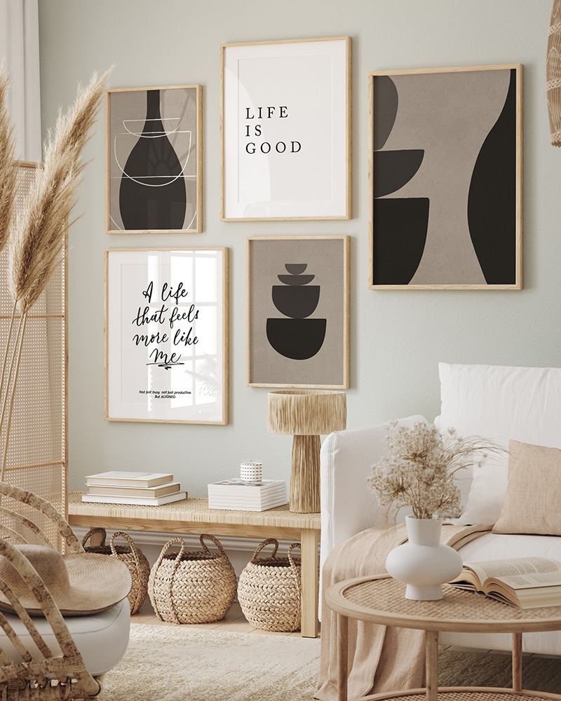 Al comprar este set de 5 Láminas Minimalistas Neutras, recibirás: