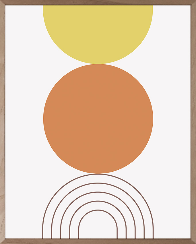 Esta lámina geométrica boho combina círculos y líneas en tonos cálidos y neutros, logrando un diseño equilibrado y actual. Su estética mezcla lo geométrico con una sensibilidad natural.