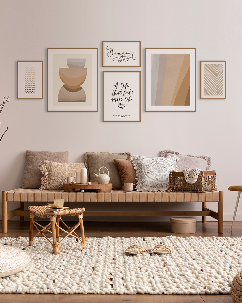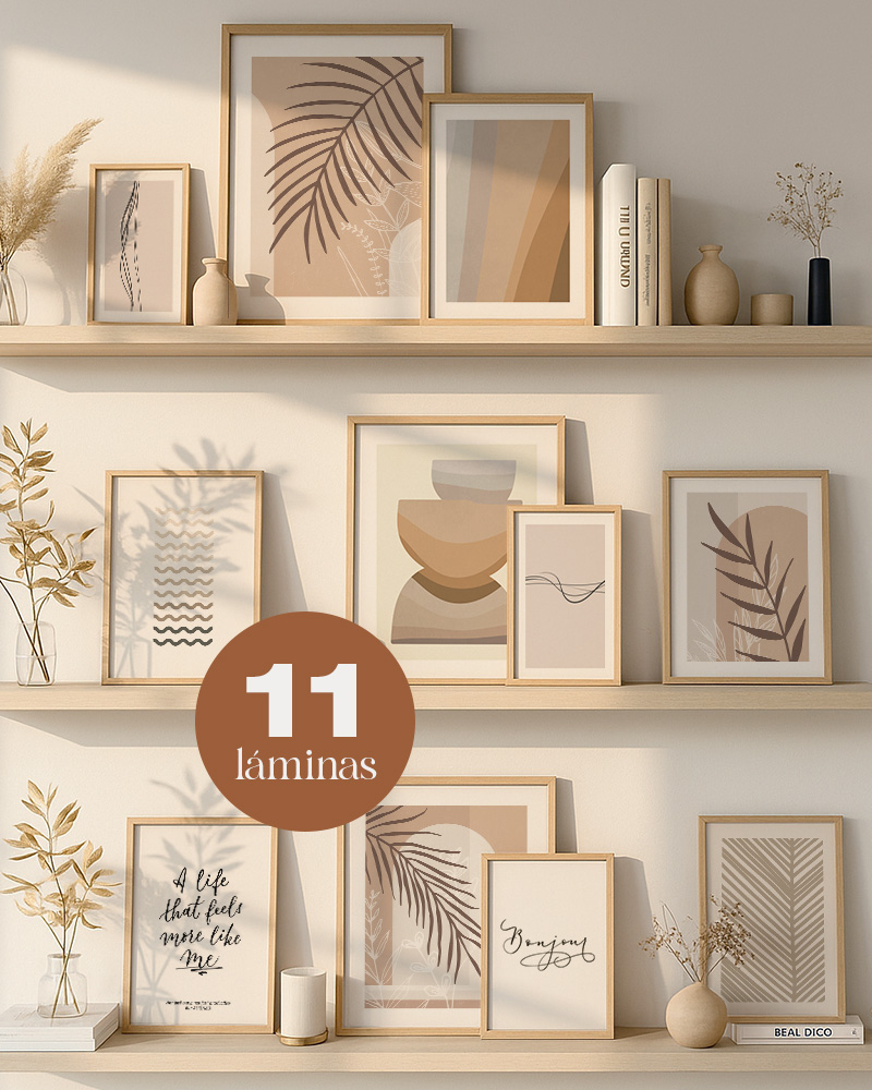 Puedes usarlas juntas para llenar una pared completa con coherencia visual, o distribuirlas en dos o tres espacios si quieres crear rincones conectados entre sí. Si buscas calma, intención y la sensación de un hogar que se siente más tuyo, este pack es para ti. En las imágenes del producto encontrarás sugerencias de composición, aunque siempre puedes adaptarlas a tu propio estilo y a la energía que quieres darle a tu casa.