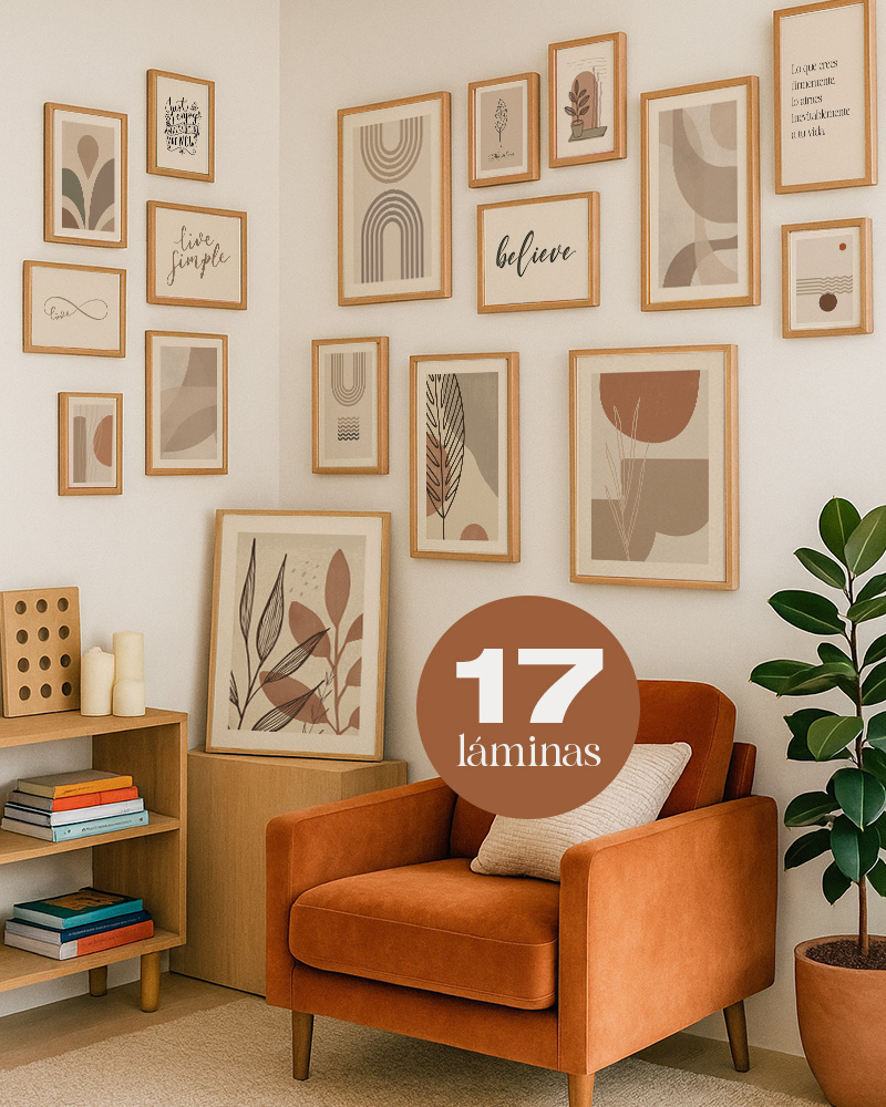 Al comprar este set de 17 láminas decorativas en tonos tierra recibirás: