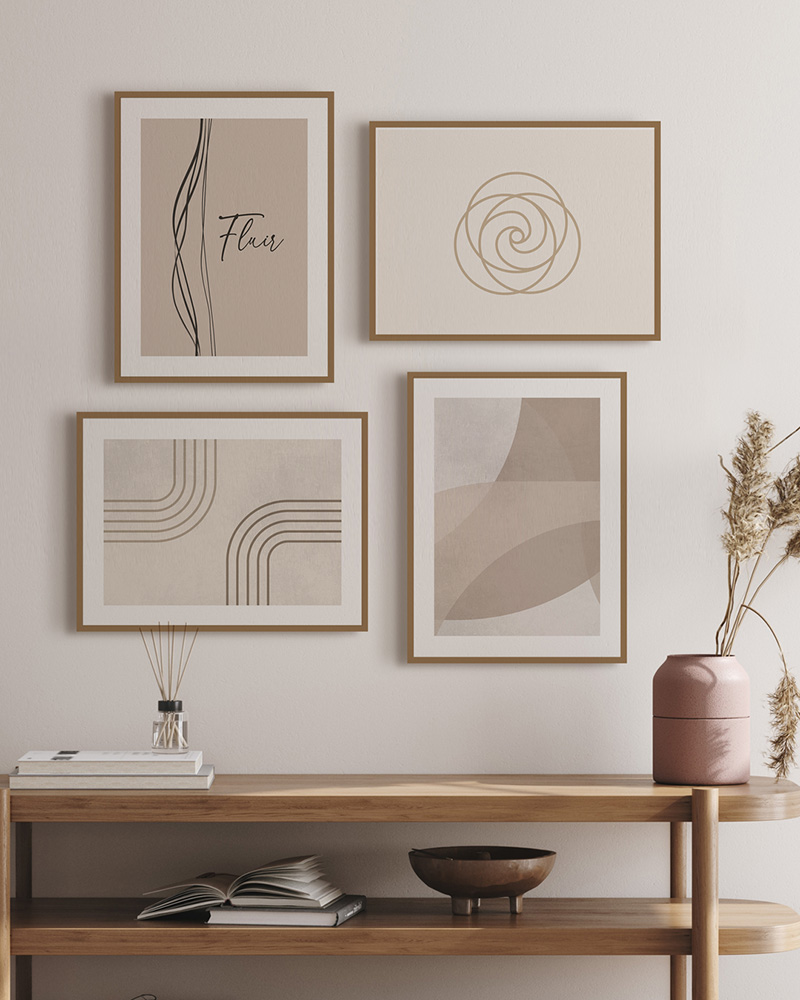Al comprar este set de 4 láminas abstractas en tonos neutros para imprimir, recibirás: